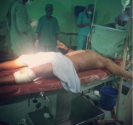The popular Nollywood actor, Charles Okocha, also known as Igwe 2Pac, was shot by accident some time ago. The actor decided to share photos showing doctors operating on him after the incident.